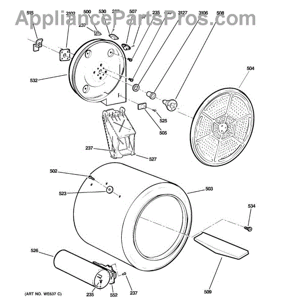 You should replace the rear drum bearing sleeve if it becomes worn out or damaged. Causes of a bad bearing sleeve can include regular wear and tear, lack of lubrication, or excessive loads that cause undue stress on the component. A malfunctioning bearing sleeve can lead to increased friction, noise, and potential damage to other parts of the dryer.