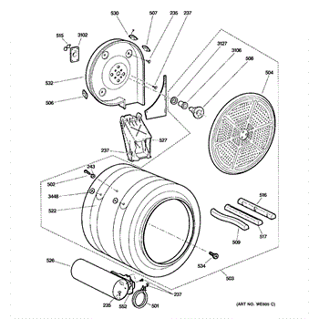 The bearing retainer secures the drum bearing assembly in your dryer. Replace if cracked, broken, or worn to restore proper structural support.
