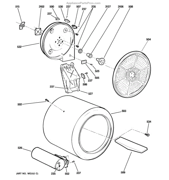 You should replace the rear drum bearing sleeve if it becomes worn out or damaged. Causes of a bad bearing sleeve can include regular wear and tear, lack of lubrication, or excessive loads that cause undue stress on the component. A malfunctioning bearing sleeve can lead to increased friction, noise, and potential damage to other parts of the dryer.