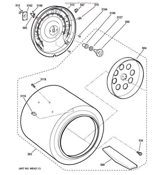This drum assembly replaces the rotating tub that holds and tumbles clothes inside the dryer, restoring smooth, balanced operation and helping garments dry evenly. Fits dryers designed for this OEM drum part number. What it does