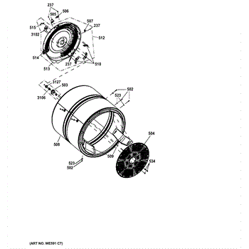 The Bearing Retainer is an OEM replacement part for GE electric dryers. It is an internal component that securely holds the drum bearing assembly in place to enable smooth rotation and provides structural bracing for the bearing during tumbling cycles.