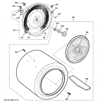 You should replace the rear drum bearing sleeve if it becomes worn out or damaged. Causes of a bad bearing sleeve can include regular wear and tear, lack of lubrication, or excessive loads that cause undue stress on the component. A malfunctioning bearing sleeve can lead to increased friction, noise, and potential damage to other parts of the dryer.