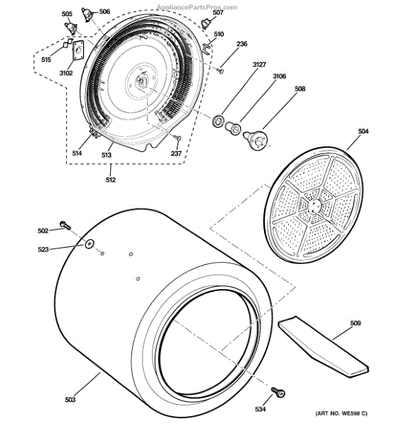 Parts for Ge GTDS580ED2WW: Drum Parts