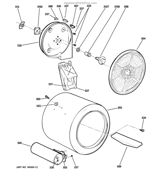 You should replace the rear drum bearing sleeve if it becomes worn out or damaged. Causes of a bad bearing sleeve can include regular wear and tear, lack of lubrication, or excessive loads that cause undue stress on the component. A malfunctioning bearing sleeve can lead to increased friction, noise, and potential damage to other parts of the dryer.