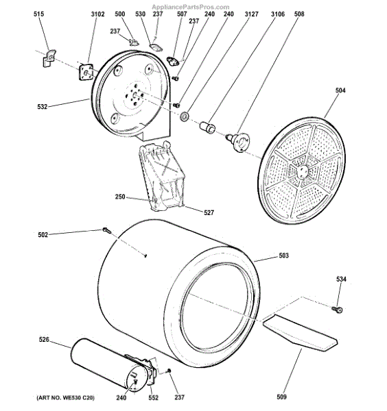 Parts for Ge GTDX180GD6WW: Drum Parts