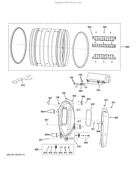 This drum baffle assembly lifts and separates laundry as the dryer drum rotates to improve tumbling and airflow for more even drying. It replaces worn or broken lifters that can cause fabric snagging or noisy operation. What it does: