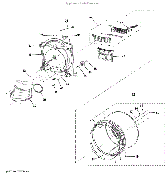 The Duct Trap Housing is an OEM component specifically designed for GE laundry machines. It serves as the housing and base unit for the duct trap or lint trap that collects lint and debris during the drying cycle. The duct trap housing is designed to seamlessly integrate with the dryer vent and ducting system.