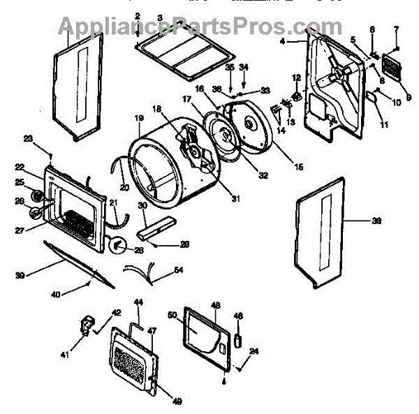 Front drum bulkhead for dryers. Mounts inside cabinet to support rotating drum. Replace if cracked, worn, or damaged to restore proper drum rotation.