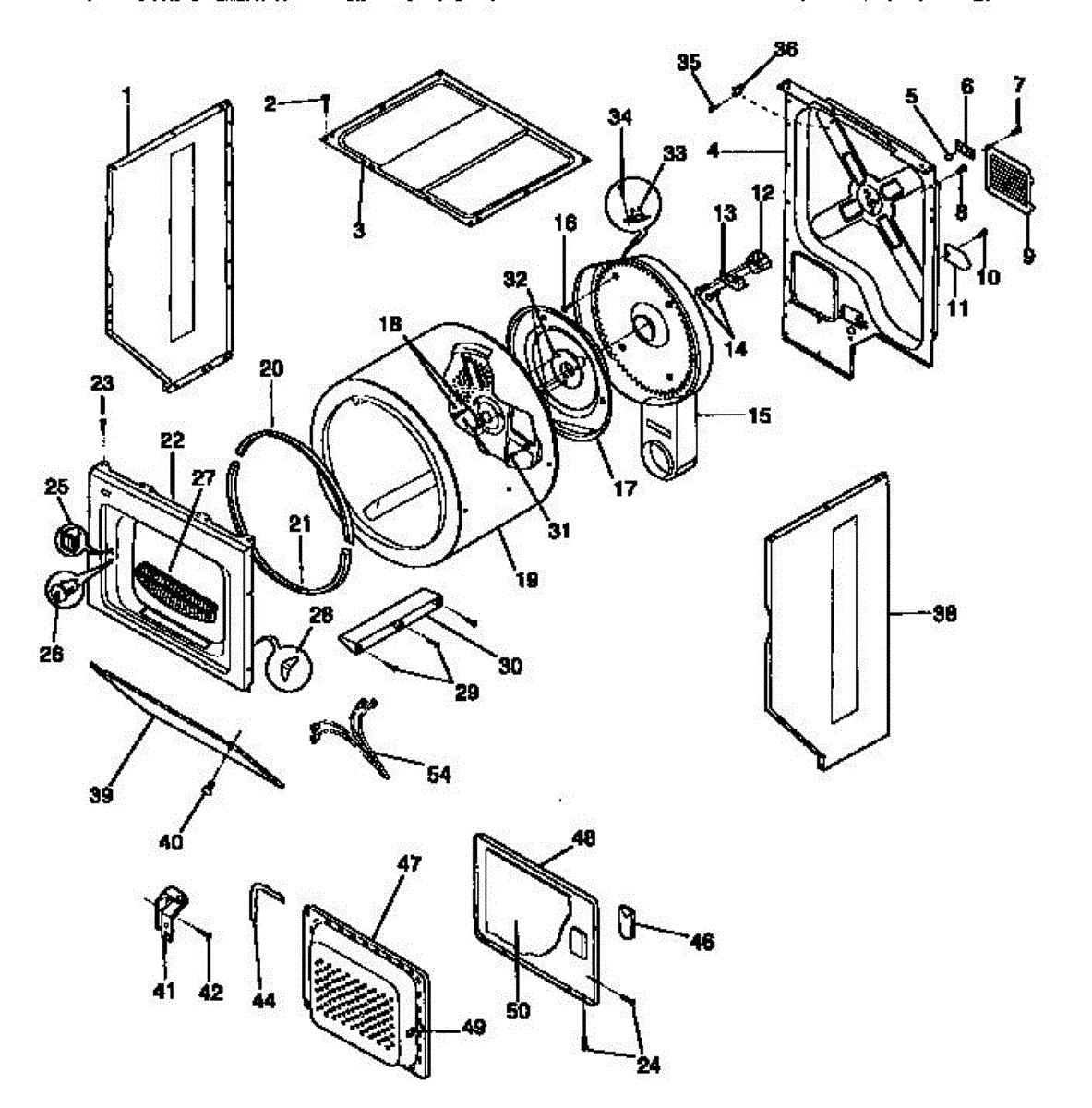 Front drum bulkhead for dryers. Mounts inside cabinet to support rotating drum. Replace if cracked, worn, or damaged to restore proper drum rotation.