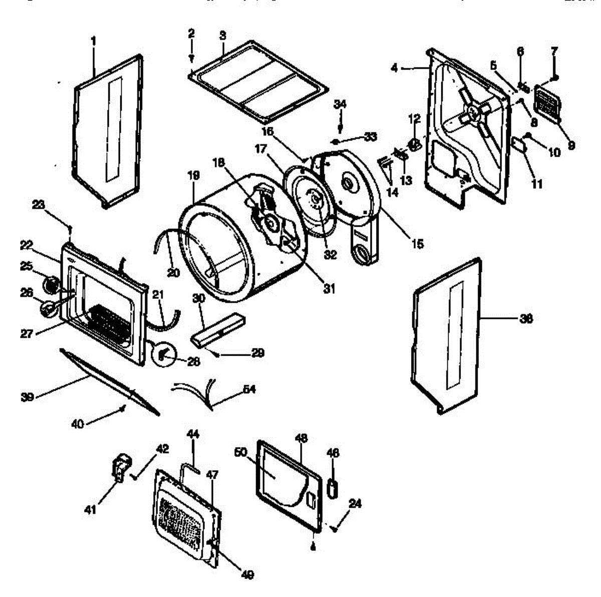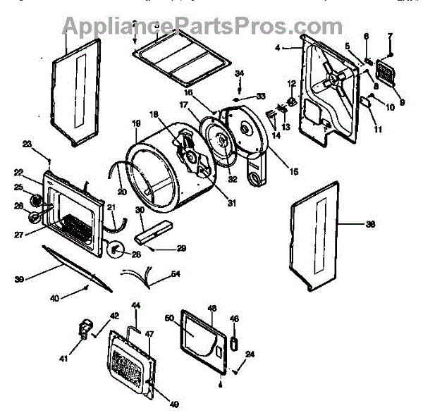 Front drum bulkhead for dryers. Mounts inside cabinet to support rotating drum. Replace if cracked, worn, or damaged to restore proper drum rotation.
