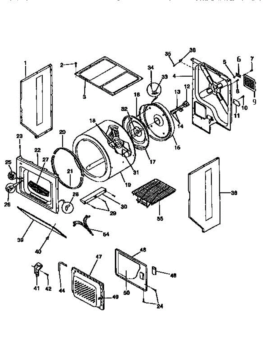 Front drum bulkhead for dryers. Mounts inside cabinet to support rotating drum. Replace if cracked, worn, or damaged to restore proper drum rotation.