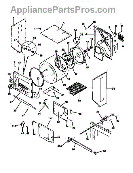Front drum bulkhead for dryers. Mounts inside cabinet to support rotating drum. Replace if cracked, worn, or damaged to restore proper drum rotation.