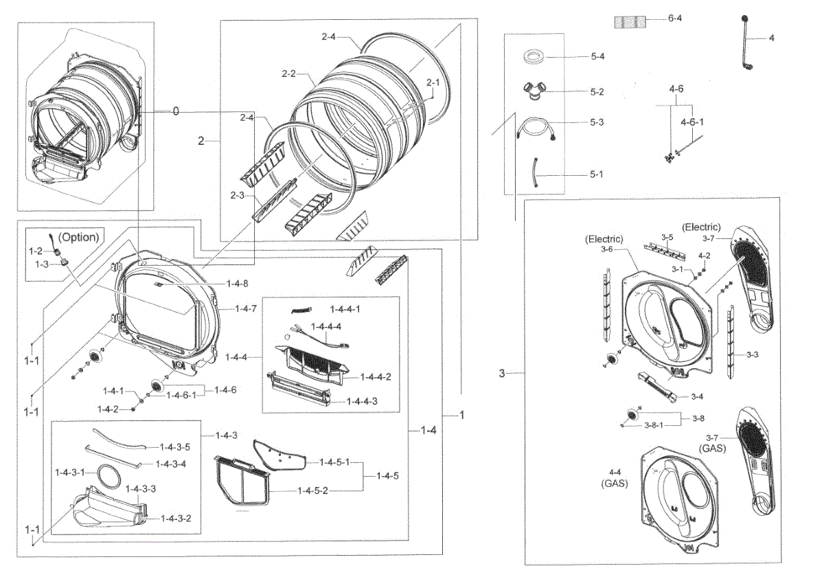 Front drum assembly module for dryers. Replaces cracked, damaged, or worn drum front housing. Essential structural component for proper drum support.