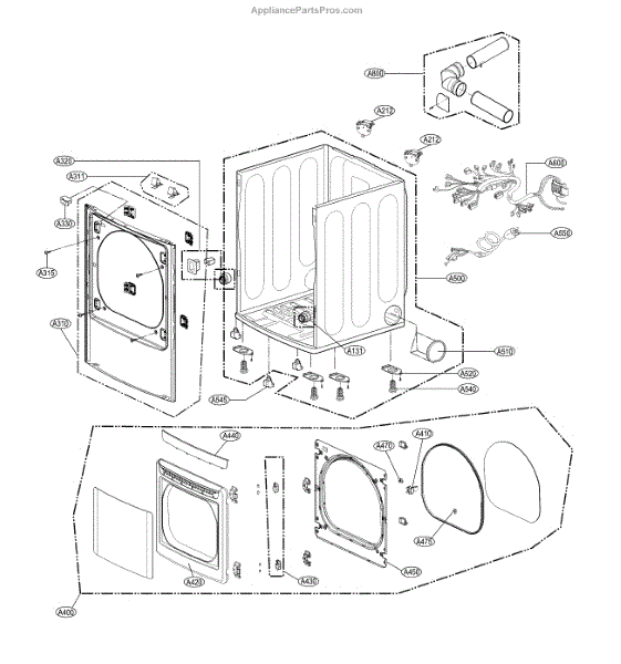 This duct assembly channels airflow inside the appliance to guide exhaust and internal air between components. Replacing a damaged or obstructed duct helps restore proper airflow and can reduce poor performance or long cycles. What it does: