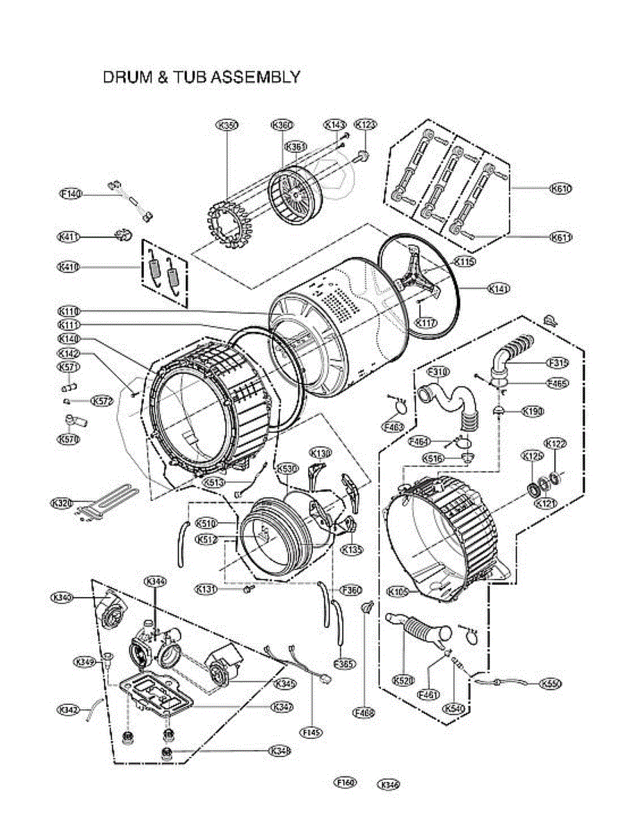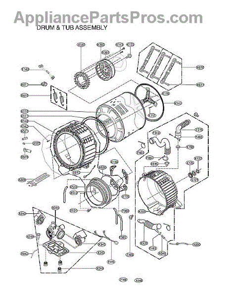 This casing fits LG top load models as well as some Kenmore configurations.