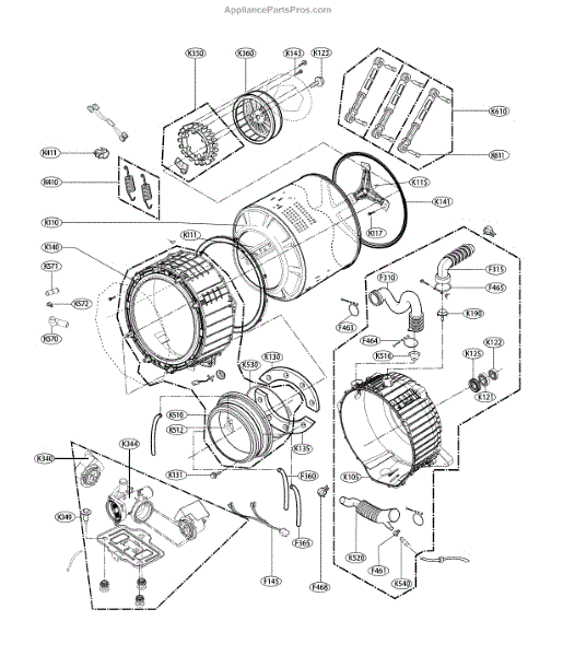 The Outer Tub Gasket is an OEM replacement part for LG front-load washers. Situated between the front and rear outer tubs, it forms a critical seal preventing water leaks during fills and cycles. Constructed from durable yet flexible rubberized material, this gasket withstands constant compression from tub movements. Causes for replacement are cracks developing from years of flexing stresses, as well as distortions that compromise sealing integrity. Normal seal compression can also cause gradual wear of sealing material over time. Symptoms of a faulty front-load outer tub gasket include: