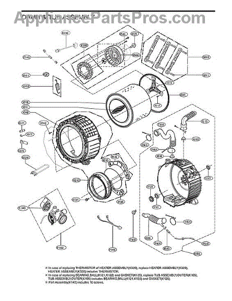 The Outer Tub Gasket is an OEM replacement part for LG front-load washers. Situated between the front and rear outer tubs, it forms a critical seal preventing water leaks during fills and cycles. Constructed from durable yet flexible rubberized material, this gasket withstands constant compression from tub movements. Causes for replacement are cracks developing from years of flexing stresses, as well as distortions that compromise sealing integrity. Normal seal compression can also cause gradual wear of sealing material over time. Symptoms of a faulty front-load outer tub gasket include: