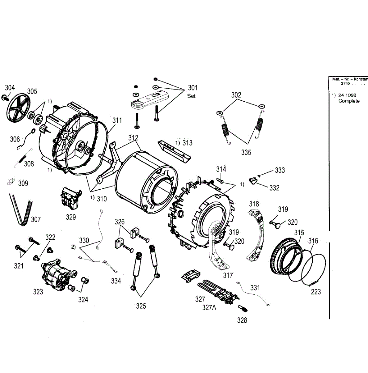 The Tank Spring is an OEM part for Bosch washing machines. It is located within the central support assembly below the washer tub. The spring provides counterbalancing tension to assist the tub during movement and rotation.