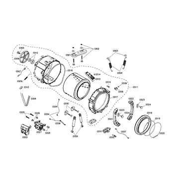 The Tank Spring is an OEM part for Bosch washing machines. It is located within the central support assembly below the washer tub. The spring provides counterbalancing tension to assist the tub during movement and rotation.