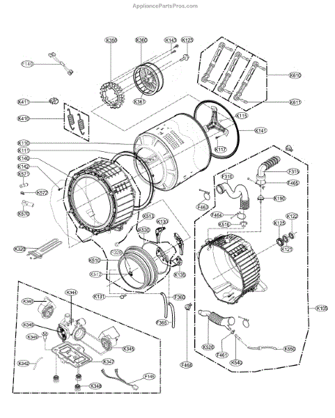 The Outer Tub Gasket is an OEM replacement part for LG front-load washers. Situated between the front and rear outer tubs, it forms a critical seal preventing water leaks during fills and cycles. Constructed from durable yet flexible rubberized material, this gasket withstands constant compression from tub movements. Causes for replacement are cracks developing from years of flexing stresses, as well as distortions that compromise sealing integrity. Normal seal compression can also cause gradual wear of sealing material over time. Symptoms of a faulty front-load outer tub gasket include: