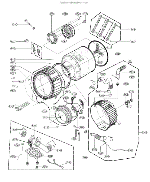 The Outer Tub Gasket is an OEM replacement part for LG front-load washers. Situated between the front and rear outer tubs, it forms a critical seal preventing water leaks during fills and cycles. Constructed from durable yet flexible rubberized material, this gasket withstands constant compression from tub movements. Causes for replacement are cracks developing from years of flexing stresses, as well as distortions that compromise sealing integrity. Normal seal compression can also cause gradual wear of sealing material over time. Symptoms of a faulty front-load outer tub gasket include: