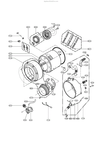 The Lower Tub Seal is an OEM part for LG front-loading washing machines. It is located between the inner and outer tubs, creating a barrier to prevent water from leaking through the space between these two components.
