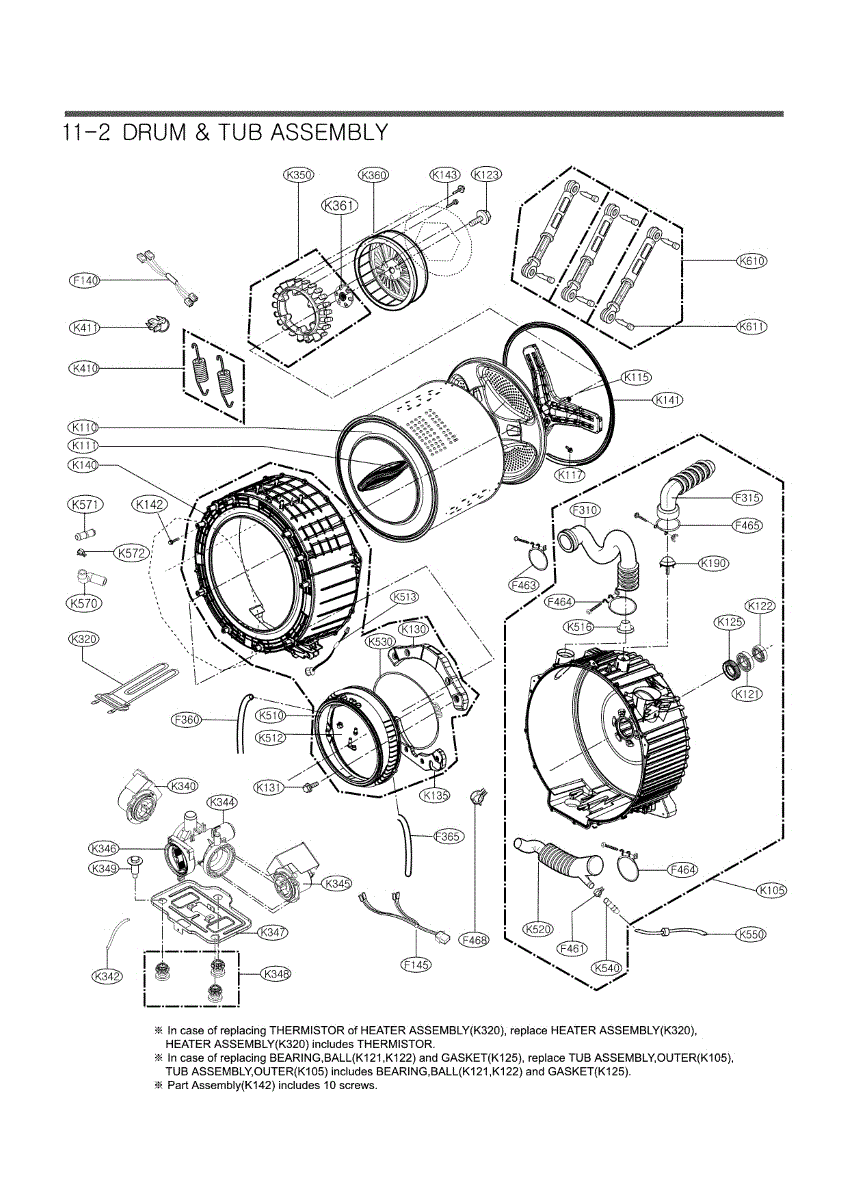 Outer tub cover for front-load washers. Replaces cracked, punctured, or leaking tub housing. Essential when the plastic outer tub is damaged by debris.