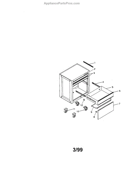 Parts for Craftsman 706652125: 3 Drwr Pro. Roll-Away W / Panel Parts