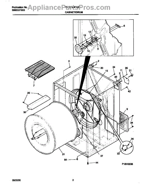The Rear Drum Bearing Kit is an OEM replacement part for Frigidaire dryers. It contains a set of parts responsible for supporting the rear end of the dryer drum, allowing it to rotate smoothly and efficiently during the drying cycle.