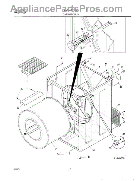 The Drum Bearing Bracket is an OEM replacement part for Frigidaire dryers. It holds and supports the drum bearing, which allows the dryer drum to spin smoothly during the tumbling and drying cycle. Causes of failure can be cracking or breaking of the bracket over time due to constant use and stress. Improper installation that puts strain on the bracket may also lead to issues. Symptoms of a bad drum bearing bracket include:
