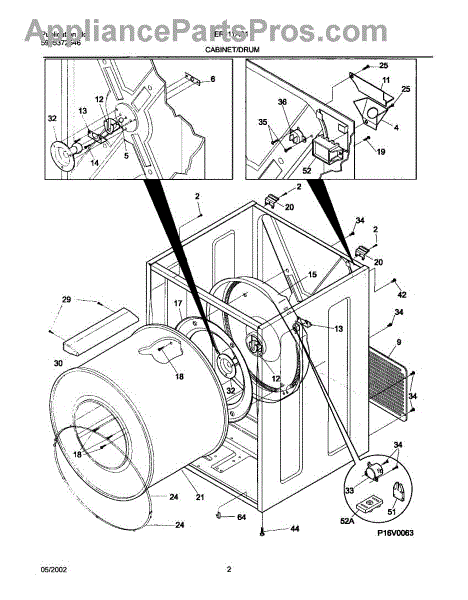 The Rear Drum Bearing Kit is an OEM replacement part for Frigidaire dryers. It contains a set of parts responsible for supporting the rear end of the dryer drum, allowing it to rotate smoothly and efficiently during the drying cycle.