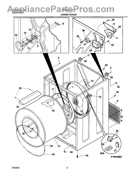 The Rear Drum Bearing Kit is an OEM replacement part for Frigidaire dryers. It contains a set of parts responsible for supporting the rear end of the dryer drum, allowing it to rotate smoothly and efficiently during the drying cycle.
