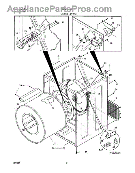 The Drum Bearing Bracket is an OEM replacement part for Frigidaire dryers. It holds and supports the drum bearing, which allows the dryer drum to spin smoothly during the tumbling and drying cycle. Causes of failure can be cracking or breaking of the bracket over time due to constant use and stress. Improper installation that puts strain on the bracket may also lead to issues. Symptoms of a bad drum bearing bracket include: