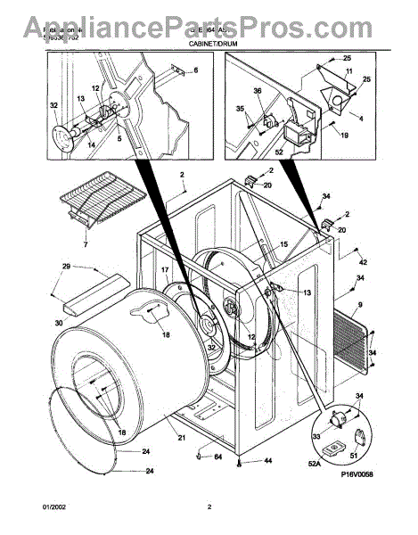 The Drum Bearing Bracket is an OEM replacement part for Frigidaire dryers. It holds and supports the drum bearing, which allows the dryer drum to spin smoothly during the tumbling and drying cycle. Causes of failure can be cracking or breaking of the bracket over time due to constant use and stress. Improper installation that puts strain on the bracket may also lead to issues. Symptoms of a bad drum bearing bracket include: