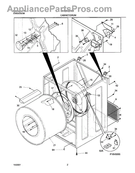 The Drum Bearing Bracket is an OEM replacement part for Frigidaire dryers. It holds and supports the drum bearing, which allows the dryer drum to spin smoothly during the tumbling and drying cycle. Causes of failure can be cracking or breaking of the bracket over time due to constant use and stress. Improper installation that puts strain on the bracket may also lead to issues. Symptoms of a bad drum bearing bracket include: