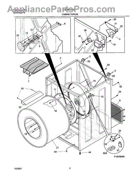 The Drum Bearing Bracket is an OEM replacement part for Frigidaire dryers. It holds and supports the drum bearing, which allows the dryer drum to spin smoothly during the tumbling and drying cycle. Causes of failure can be cracking or breaking of the bracket over time due to constant use and stress. Improper installation that puts strain on the bracket may also lead to issues. Symptoms of a bad drum bearing bracket include:
