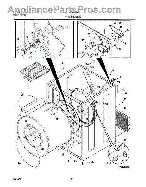The Drum Bearing Bracket is an OEM replacement part for Frigidaire dryers. It holds and supports the drum bearing, which allows the dryer drum to spin smoothly during the tumbling and drying cycle. Causes of failure can be cracking or breaking of the bracket over time due to constant use and stress. Improper installation that puts strain on the bracket may also lead to issues. Symptoms of a bad drum bearing bracket include:
