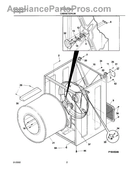 The Rear Drum Bearing Kit is an OEM replacement part for Frigidaire dryers. It contains a set of parts responsible for supporting the rear end of the dryer drum, allowing it to rotate smoothly and efficiently during the drying cycle.