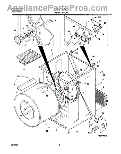 The Drum Bearing Bracket is an OEM replacement part for Frigidaire dryers. It holds and supports the drum bearing, which allows the dryer drum to spin smoothly during the tumbling and drying cycle. Causes of failure can be cracking or breaking of the bracket over time due to constant use and stress. Improper installation that puts strain on the bracket may also lead to issues. Symptoms of a bad drum bearing bracket include:
