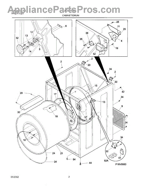 The Drum Bearing Bracket is an OEM replacement part for Frigidaire dryers. It holds and supports the drum bearing, which allows the dryer drum to spin smoothly during the tumbling and drying cycle. Causes of failure can be cracking or breaking of the bracket over time due to constant use and stress. Improper installation that puts strain on the bracket may also lead to issues. Symptoms of a bad drum bearing bracket include: