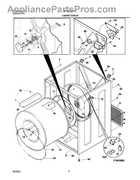 The Drum Bearing Bracket is an OEM replacement part for Frigidaire dryers. It holds and supports the drum bearing, which allows the dryer drum to spin smoothly during the tumbling and drying cycle. Causes of failure can be cracking or breaking of the bracket over time due to constant use and stress. Improper installation that puts strain on the bracket may also lead to issues. Symptoms of a bad drum bearing bracket include:
