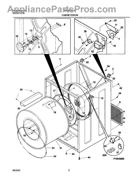 The Rear Drum Bearing Kit is an OEM replacement part for Frigidaire dryers. It contains a set of parts responsible for supporting the rear end of the dryer drum, allowing it to rotate smoothly and efficiently during the drying cycle.