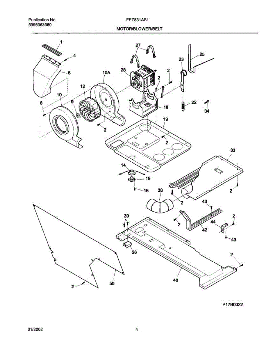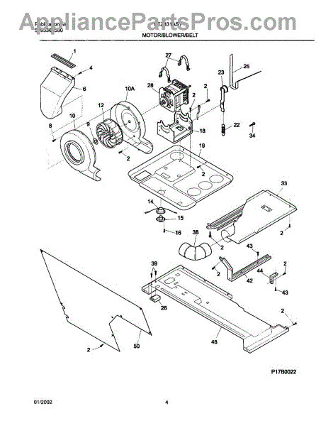 The blower housing assembly encloses the blower wheel and channels air through the unit's coils. Replacing a cracked or warped housing helps restore smooth airflow and reduce blower noise caused by rubbing or misalignment.