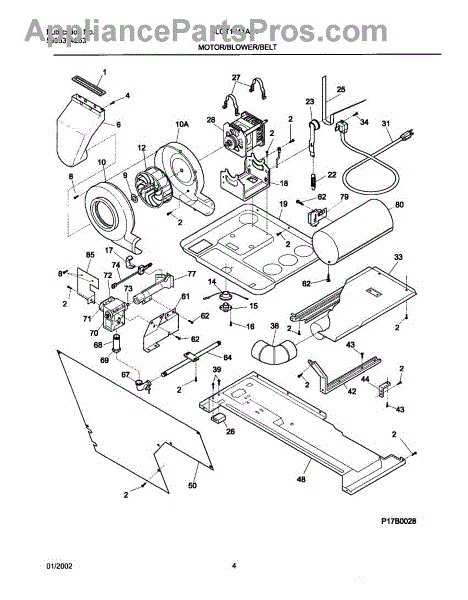 Parts for Frigidaire GLGT1041AS1: 05 - Dry Mtr,Belt Parts