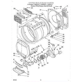 This front drum bulkhead is the stationary front panel that supports the dryer drum and seals the drum opening to maintain proper airflow and drum alignment for reliable drying performance. What it does: