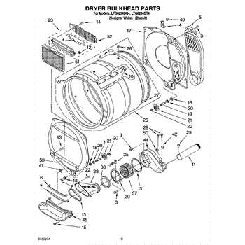 This front drum bulkhead is the stationary front panel that supports the dryer drum and seals the drum opening to maintain proper airflow and drum alignment for reliable drying performance. What it does: