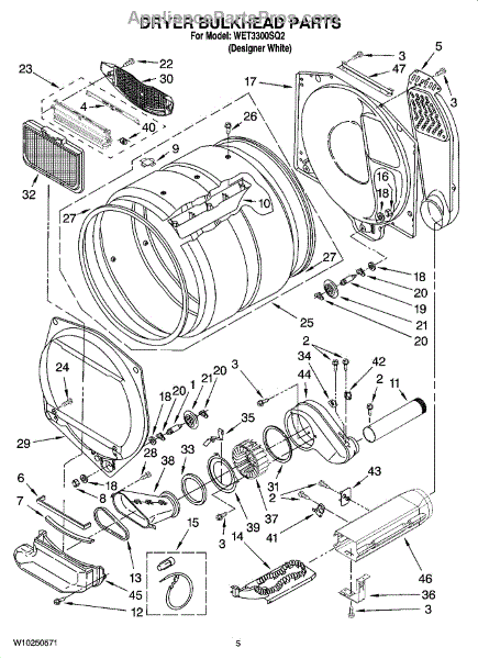 This front drum bulkhead is the stationary front panel that supports the dryer drum and seals the drum opening to maintain proper airflow and drum alignment for reliable drying performance. What it does: