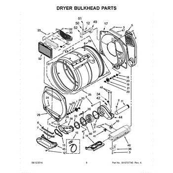 This front drum bulkhead is the stationary front panel that supports the dryer drum and seals the drum opening to maintain proper airflow and drum alignment for reliable drying performance. What it does: