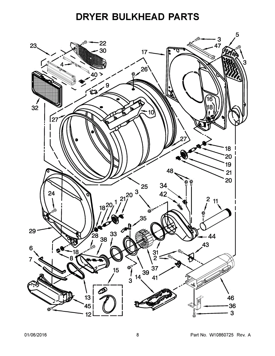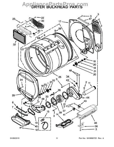 If clothes are snagging or drying unevenly, a damaged drum may be the cause. This stamped steel drum assembly restores smooth tumbling. Moderate DIY repair.
