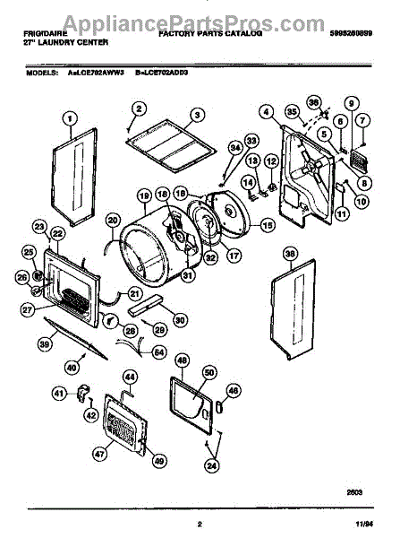 Note: For the Hi-Temp Adhesive, order part number 5308027429. Additional parts to check are the rear drum bearing kit 5303281153 and the front felt glide assembly 5303937139.